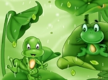 一天,两只吹牛的青蛙在湖边相遇了,就乱吹起来。